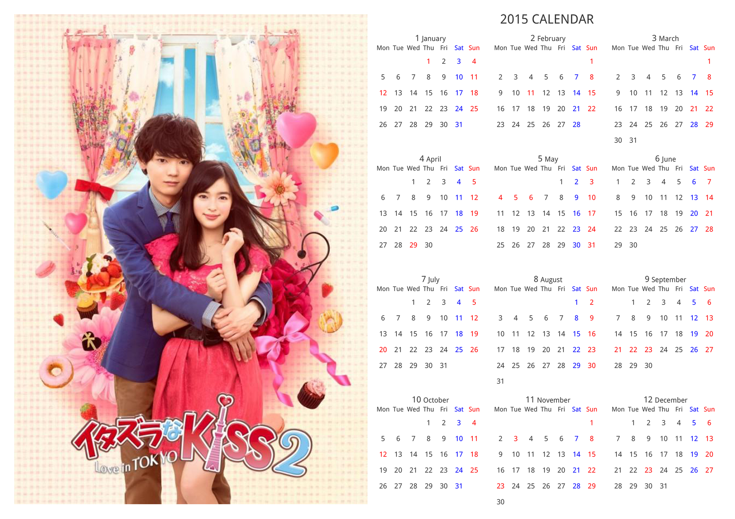 イタキスカレンダー2015:年間カレンダー/月曜はじまり